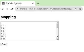 يمكن للمستخدمين استخدام Translit بسهولة عن طريق النقر بزر الفأرة الأيسر على زر الإضافة وتحديد النص على الصفحة لتطبيق الرسم البياني المطلوب. وللحصول على مزيد من التخصيص، يمكن للأفراد النقر بزر الفأرة الأيمن على زر الإضافة واختيار "Options" لعرض وضبط إعدادات الرسم البياني. سواء كان التحويل لحروف فردية أو كلمات كاملة، يقدم Translit حلاً عمليًا للتحديات اللغوية.